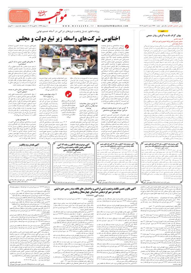 با توجه به افزایش هزینه‌های تولید روزنامه در چند ماهِ اخیر، و تلاش ما در راستای ادامه انتشار روزنامه «مواجهه» به‌روال معمول و حفظِ کیفیت و تیراژ روزنامه، ناگزیر به حذفِ امکان بازدید رایگان سایت و به‌تبع آن فروشِ آنلاین مطالب از طریق سایت هستیم. بنابر وضعیتِ اقتصادی اخیر، خاصه گرانی و نبودِ کاغذ موردنیاز برای انتشار روزنامه، در صورتی‌ که متقاضیِ بازدید از سایت روزنامه هستید و جهتِ یاری به امر فرهنگی و امکان ادامه انتشار روزنامه در این مسیر نیز ما را همراهی کنید.