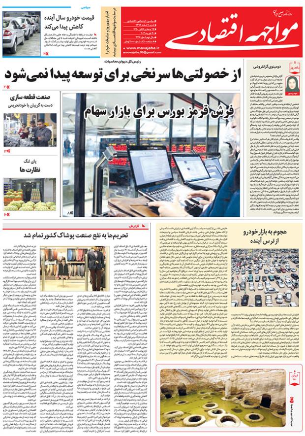 از خصولتی‌ها سرنخی برای توسعه پیدا نمی‌شودفرش قرمز بورس برای بازار سهام صنعت قطعه سازی دست به گریبان با خود تحریمیپای لنگ نظارت هانگاه روزتحریم‌ها به نفع صنعت پوشاک کشور تمام شدهجوم به بازار خودرو از ترس آینده