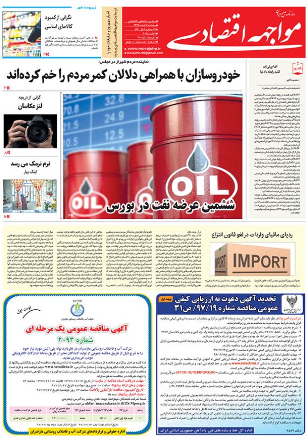 خودروسازان با همراهی دلالان کمر مردم را خم کرده‌اندششمین عرضه نفت در بورسنرم نرمک می رسد اینک بهار گرانی از دریچه لنز عکاساننگاه روزردپای مافیای واردات در لغو قانون انتزاع